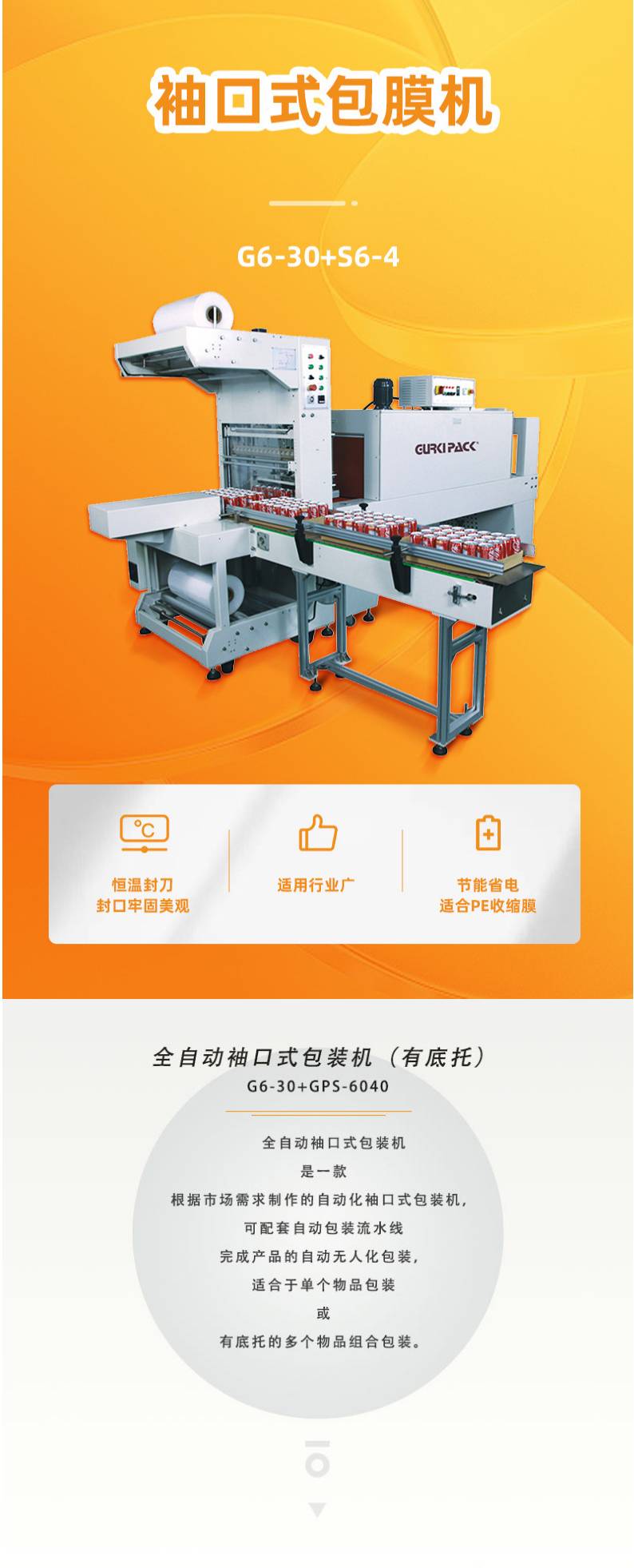 全自动袖口包装机 纸箱饮料矿泉水袖口式包膜机覆膜机G6-30+S6-4